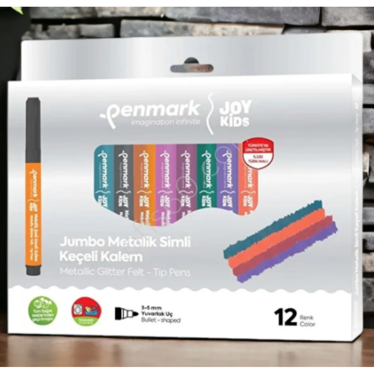 SÜPER YIKANABİLİR METALİK SİMLİ JUMBO KEÇELİ KALEM 12 Lİ